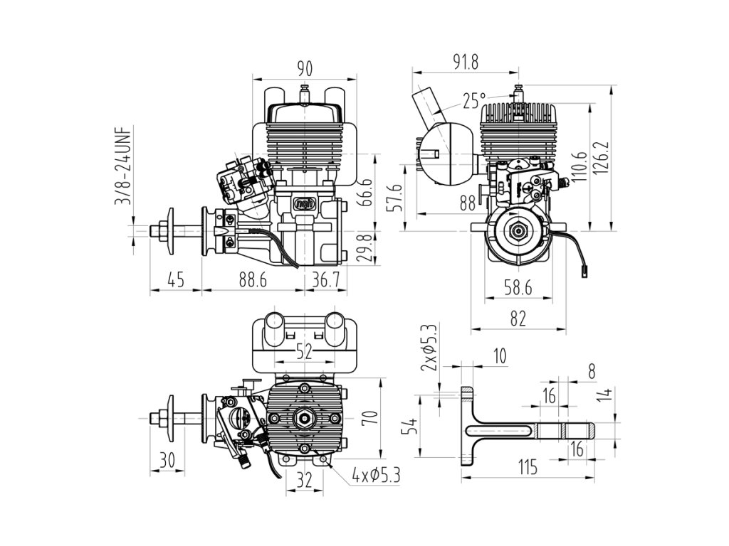 Doporučená vrtule | Dvoulistá 18x10 ; 19x8 ; 19x10 ; 20x8 |