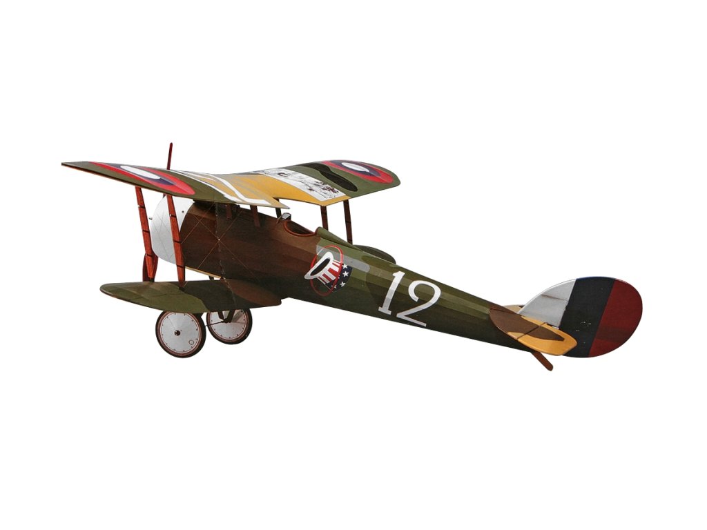 Stavebnice RC polomakety francouzského stíhacího dvojplošníku určená pro pohon elektromotorem. Model je jednoduché klasické celobalsové konstrukce v rozsypu s laserem vyřezávanými dřevěnými díly, maketovými doplňky z vakuově tvářeného plastu, plastovými díly zhotovenými vstřikovým lisováním a z kovu. Trup je konstruován běžnou minimaketářskou technologií z bočnic slepených z balsových nosníků, které spojíte polopřepážkami a příčkami do příhradového rámu. Výsledné tvary získáte po nalepení několika dodatečných podélníků. Křídla je klasické konstrukce z nosníků a žeber, ocasní plochy z balsových lišt a laserem vyřezávaných dílů. Drobnou "vychytávkou" je zhotovování koncových oblouků křídel z balsových pásků laminovaných za mokra. Získáte tak snadno překvapivě pevné a velmi lehké díly - a bez použití uhlíku! Výkresy potřebných šablon opět najdete v návodu. Celý model můžete potáhnout papírem dodávaným ve stavebnici nebo vhodnou lehkou nažehlovací fólií s malou smrštivostí, jako je Airspan nebo Litespan.