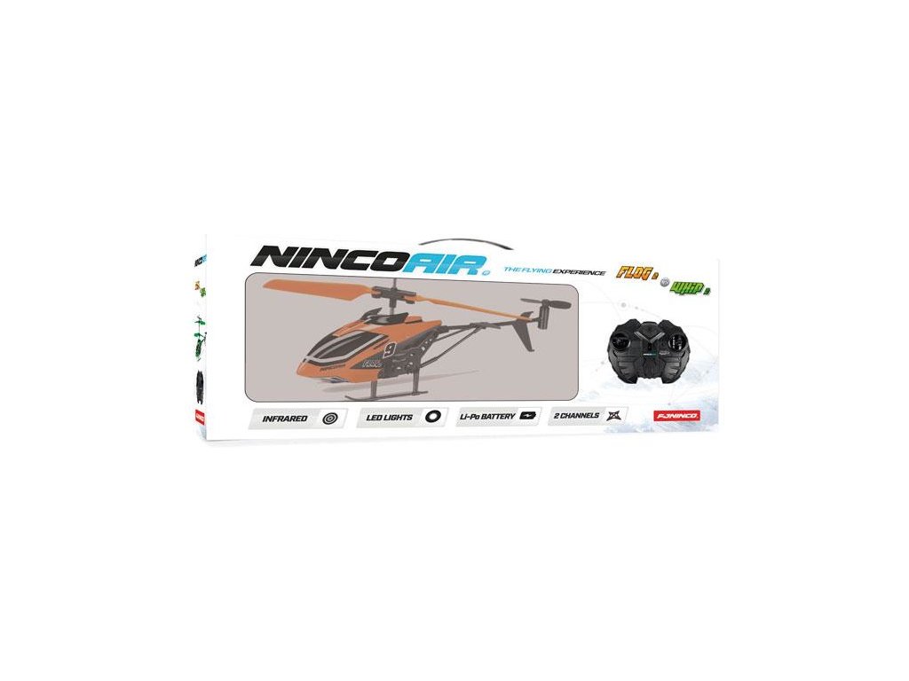 Dálkově řízený vrtulník NINCOAIR Flog 2 je díky integrovanému gyroskopu skvělou volbou pro děti a začátečníky. Je velmi stabilní, určený do interiéru. Pohonný LiPol akumulátor 3,7 V 75 mAh, který se nabíjí přes vysílač. Vysílač je dvoukanálový s infračerveným přenosem. Letový čas až 6 minut.