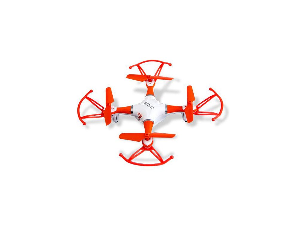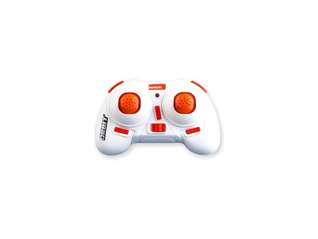 K řízení dronu je použit malý velmi dobře ergonomicky zpracovaný vysílač bílé barvy s oranžovými tlačítky který fantasticky padne do ruky dětem i dospělým. Vysílá na frekvenci 2,4 GHz díky které nedochází k žádnému rušení. 4-kanálový vysílač se skvělým dosahem 40m je v módu 2 (plyn vlevo). Má tyto funkce - let dopředu, let dozadu, let vlevo a vpravo. Přepínání letových režimů, vzlet a přistání, Flip 360 %.