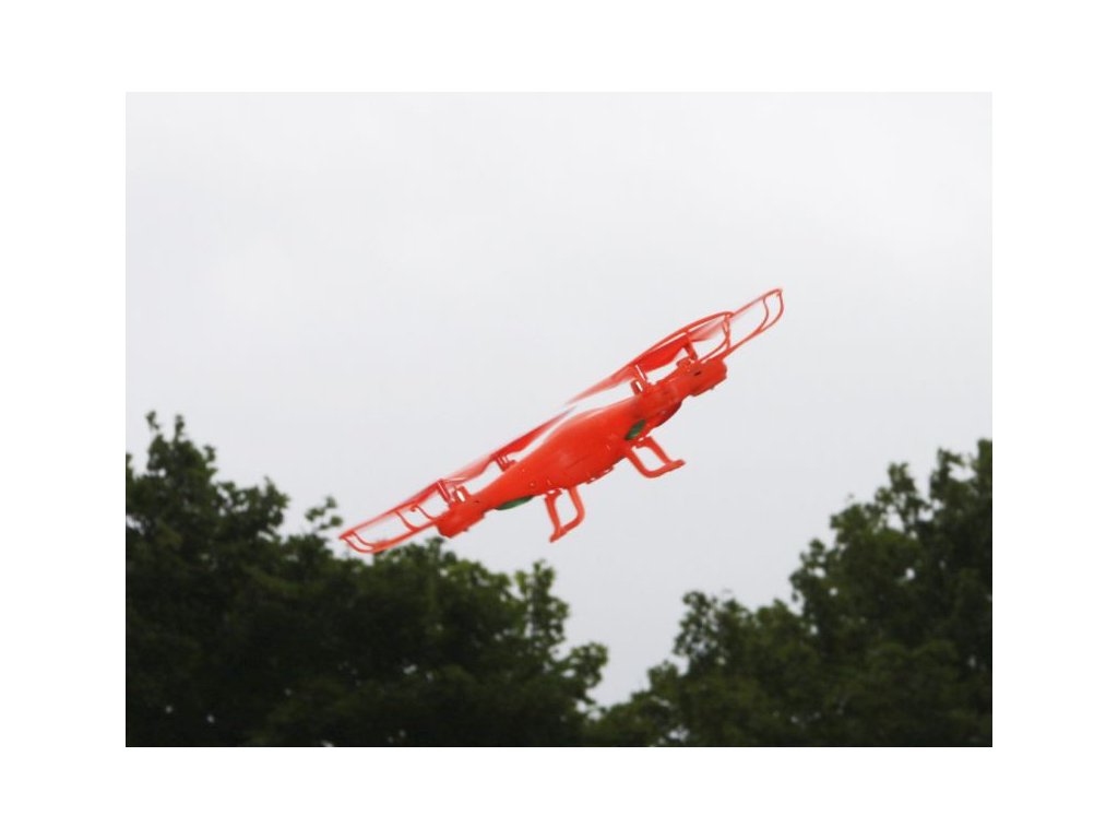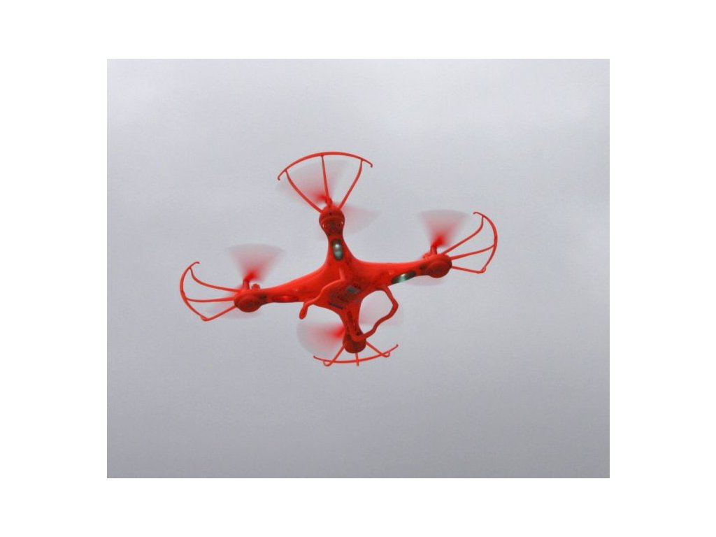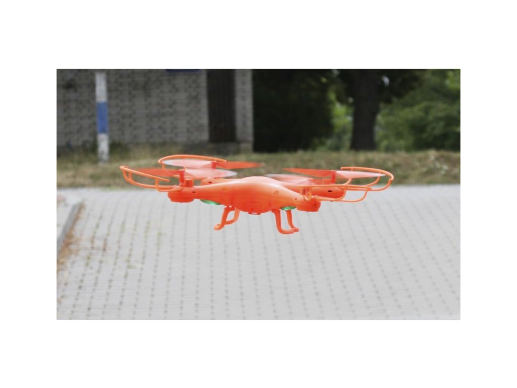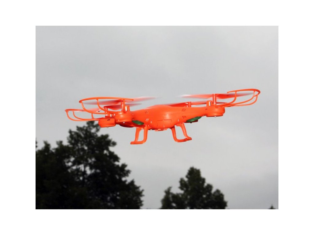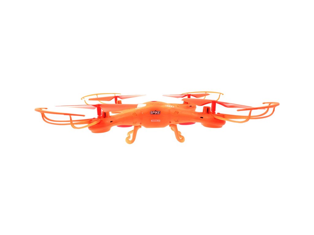 Dron střední velikost Quadrone Spike nabízí skvělou zábavu jak pro začínající piloty tak pro pokročilé. Rozměry 320x320x70mm mm vám dovolí brát jej všude sebou. Je vhodný do vnitřních prostor nebo za bezvětří a mírného větru i do přírody nebo na dětské hřiště. Trup dronu je oranžový, což zajišťuje výbornou viditelnost. Ochranné kryty vrtulí zabrání nehodám a ochrání vaše děti.