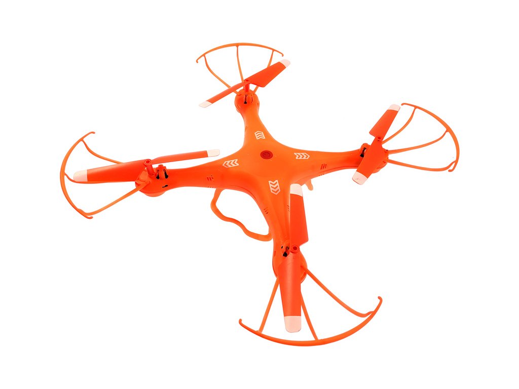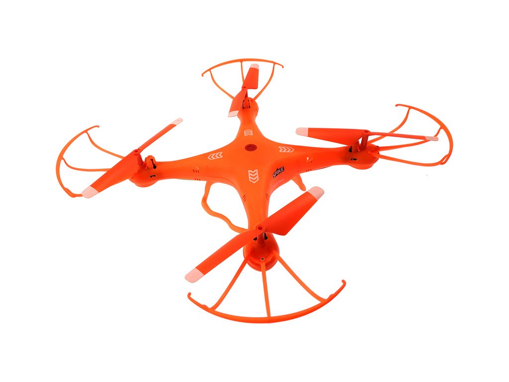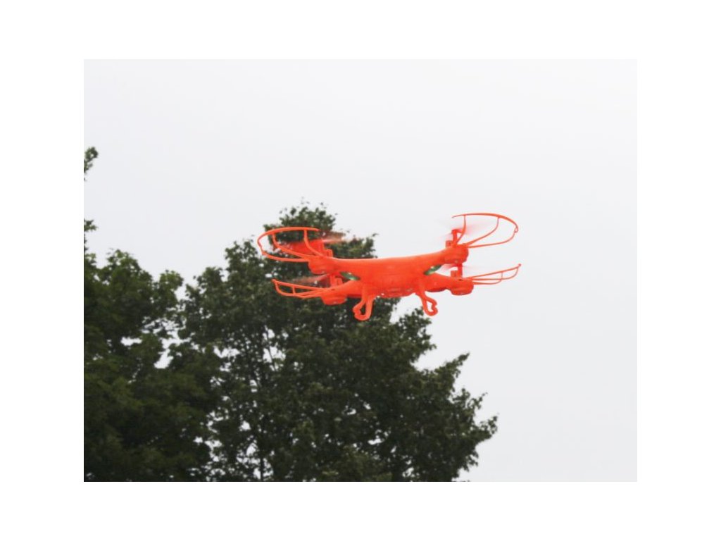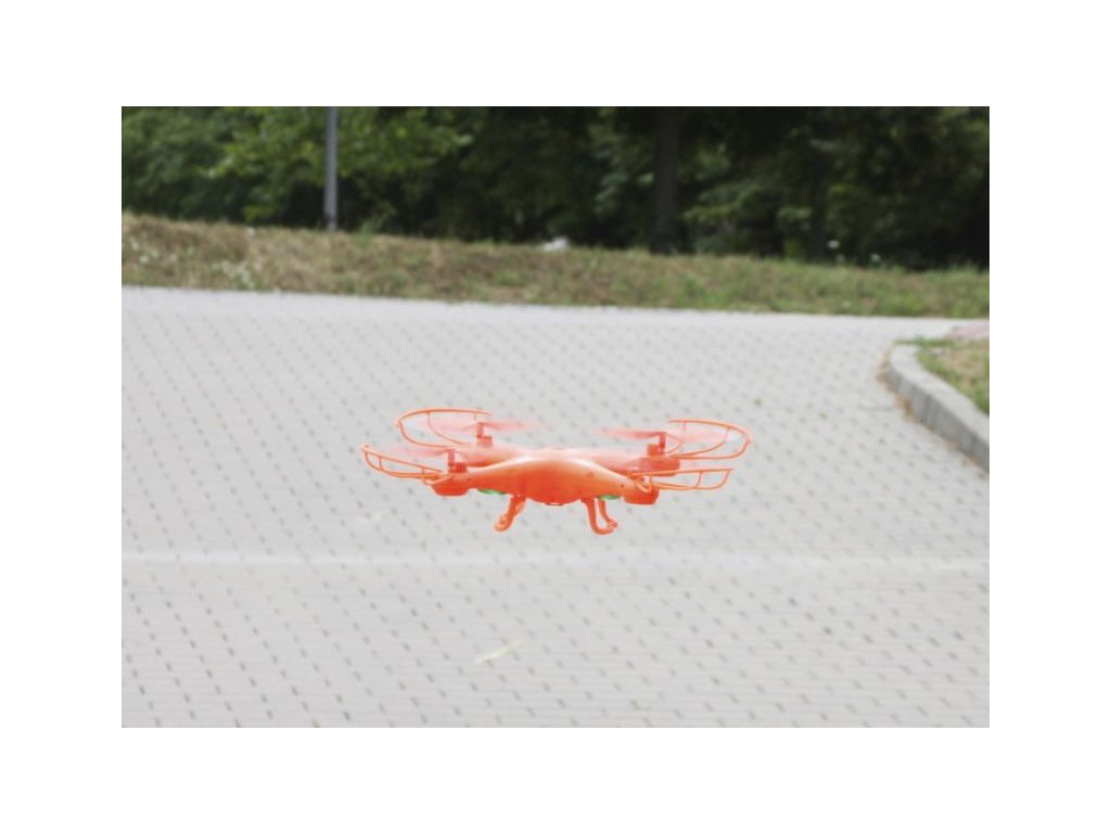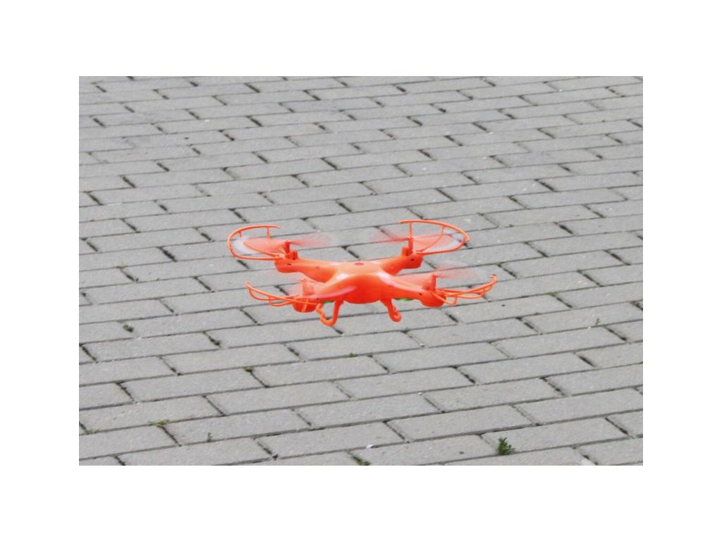 Dron střední velikost Quadrone Spike nabízí skvělou zábavu jak pro začínající piloty tak pro pokročilé. Rozměry 320x320x70mm mm vám dovolí brát jej všude sebou. Je vhodný do vnitřních prostor nebo za bezvětří a mírného větru i do přírody nebo na dětské hřiště. Trup dronu je oranžový, což zajišťuje výbornou viditelnost. Ochranné kryty vrtulí zabrání nehodám a ochrání vaše děti.