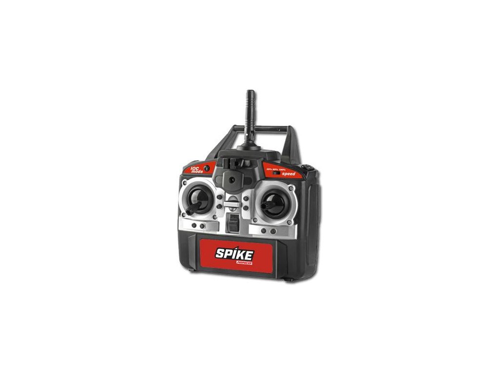 K řízení dronu je použit kvalitně zpracovaný vysílač s křížovými ovladači a trimy. (Tento typ vysílačů se používá u dražších dronů). Vysílá na frekvenci 2,4 GHz díky které nedochází k žádnému rušení. 4-kanálový vysílač se skvělým dosahem je v módu 2 (plyn vlevo).