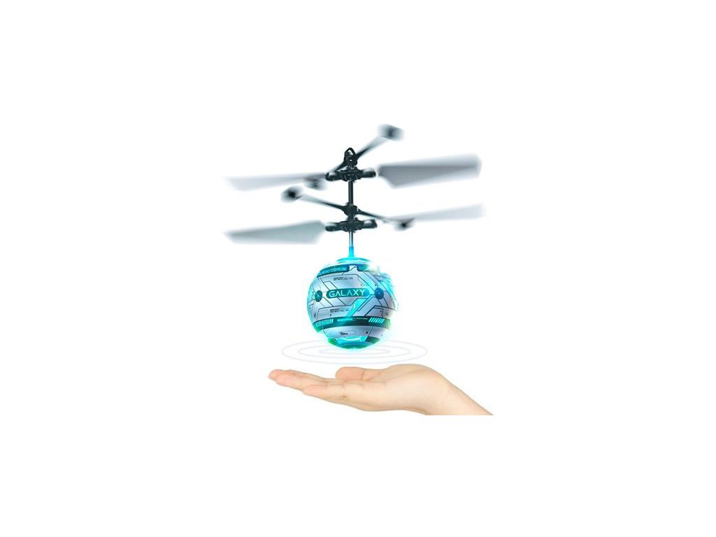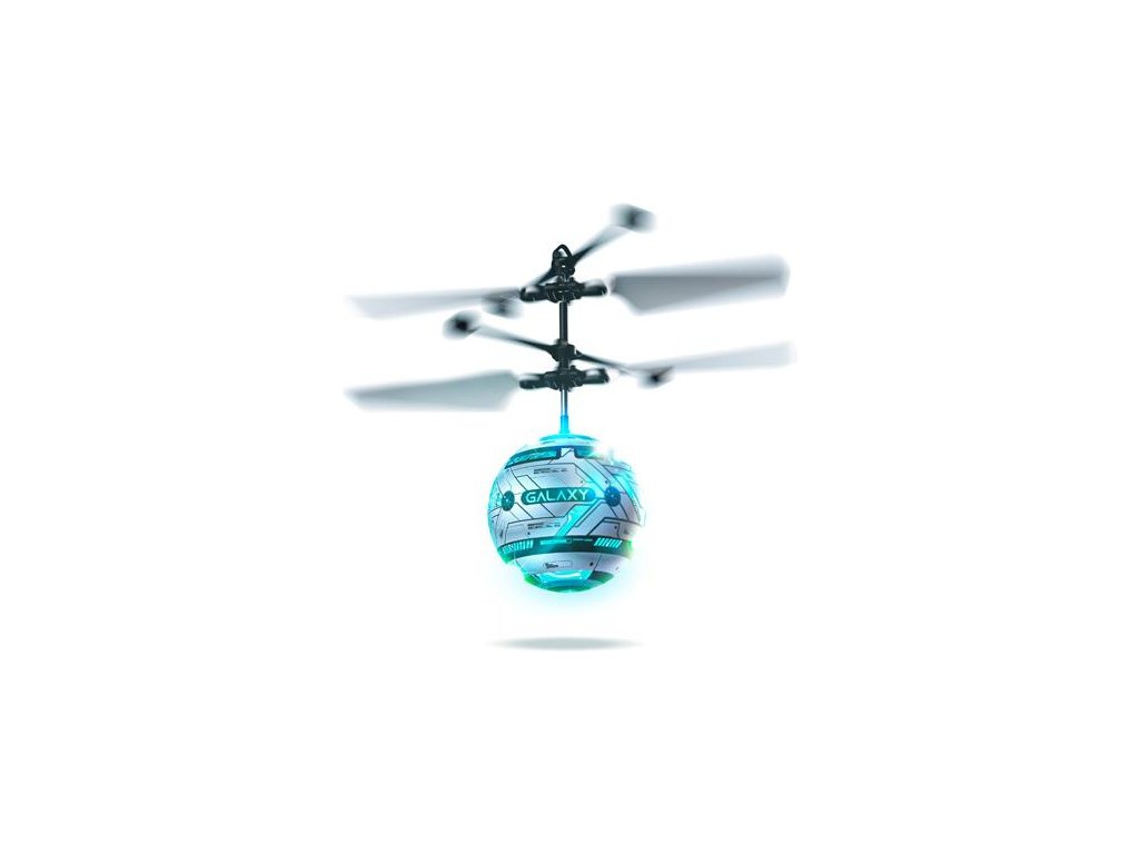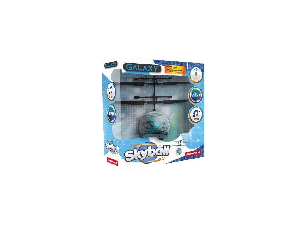 Létající zábavná hračka Skyball Galaxy s blikajícím LED světlem, integrovaným reproduktorem vydávajícím galaktické zvuky. Skyball se ovládá ručně pomocí senzoru přiblížení ze spodní strany. Integrovaný LiPol akumulátor 3,7V 100mAh a USB nabíječ. Určeno do interiéru.