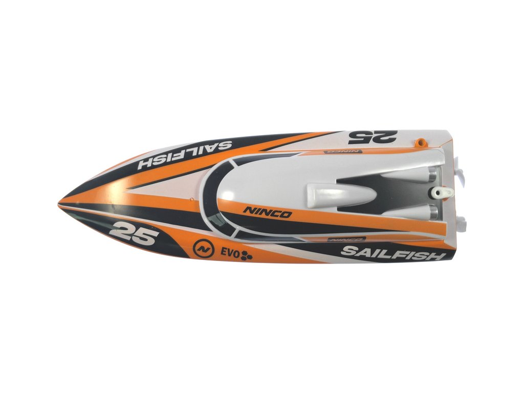 Loď je poháněna 3x tužkovými AA bateriemi. 2x AA bateriemi je nutno doplnit do vysílače.