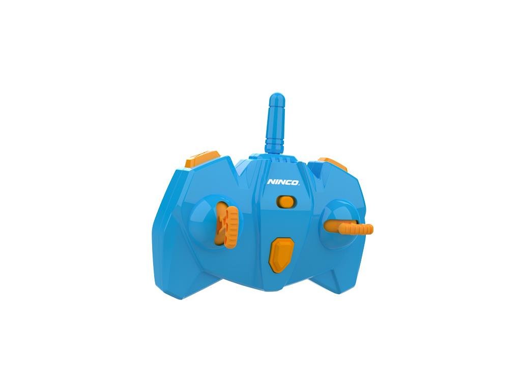 Vysílač je výborně ergonomicky zpracován a velmi dobře padne dětem do ruky. Zvolená frekvence v pásmu 2,4 GHz zajišťuje odolnost vůči rušení. Dosah vysílače je až 25 metrů.