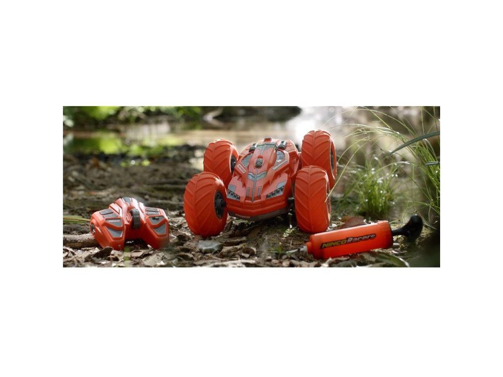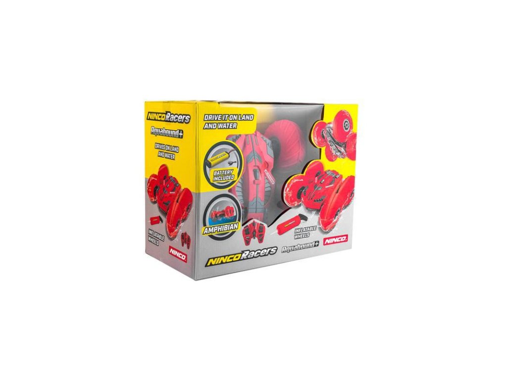 RC model Nincoracers Aquabound+ je novinkou firmy Ninco. Oboustarnný model s nafukovacími koly, dokáže dělat úžasné triky, skoky a přetočení. Je obojživelný, umí skvěle jezdit v terénu, i ve vodě. Balení obsahuje pumpičku, kterou lze dofouknout jeho obří oranžová kola. Vše potřebné k jízdě je již součástí balení. Tlačítkový vysílač, pracující v pásmu 2,4GHz. Akumulátor 6V 700 mAh, USB nabíječ. Pumpička.