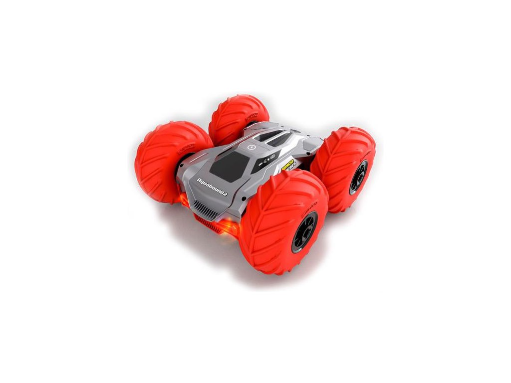 RC hračka pro děti Nincoracers Aquabound 2. Oboustranný model s náhonem 4WD a nafukovacími koly, dokáže dělat úžasné triky a skoky. Je obojživelný, umí skvěle jezdit v terénu i ve vodě. Balení obsahuje pumpičku, kterou lze dofouknout jeho obří oranžová kola. Nově je hračka vybavena předními a zadními LED světly, díky tomu je výborně vidět a děti si zamilují večerní projížďky. Vše potřebné k jízdě je již součástí balení.