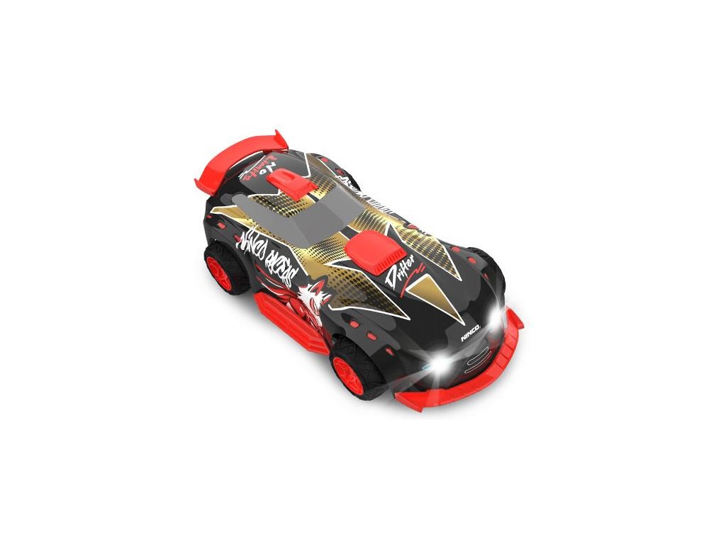 Auto na dálkové ovládání NINCORACERS Drifter RTR s předními LED světly, designovou závodní karoserií a gumovými pneumatikami. Obsahuje funkce demo a programování. Vysílač 2.4GHz. Akumulátor Li-ion 3,7V 500mAh a USB nabíječ.