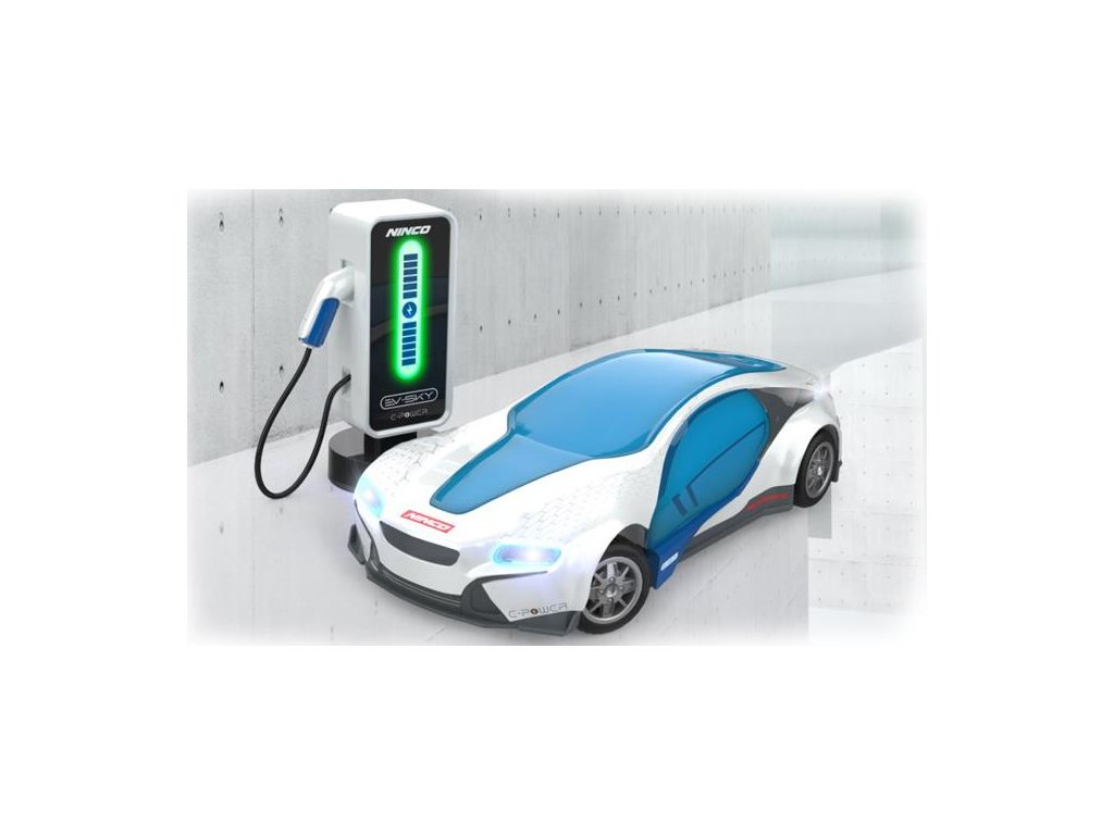 Auto na dálkové ovládání NINCORACERS EV-Sky RTR s nabíjecí stanicí (slouží jako Powerbanka 3.7V 1200 mAh). Přední a zadní efektní LED osvětlení s 5 režimy. Speciální funkce automatického parkování. Zvuky auta a klaksonu. Vysílač 2,4GHz. Akumulátor v autě Li-ion 3,7V 500mAh.