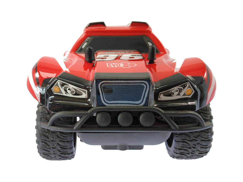 Terénní RC hračka pro děti Nincoracers ION+ v měřítku 1:18 s délkou téměř 27 cm, patří do kategorie Short course. Díky větším rozměrů model lepé překonává nerovnosti v terénu. V předu je opatřen ochranným nárazníkem. Velká kola v kombinaci s pružinovými tlumiči skvěle kopírují terén. Karoserie je z odolného plastu. Má atraktivní červenobílé závodní zbarvení. Auto jede rychlostí až 15 km/h a je poháněno Li-Ion akumulátorem, který nabijete přiloženým USB nabíječem.