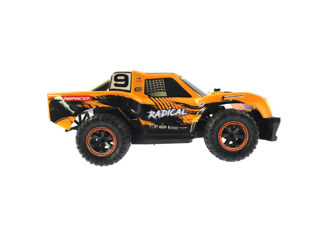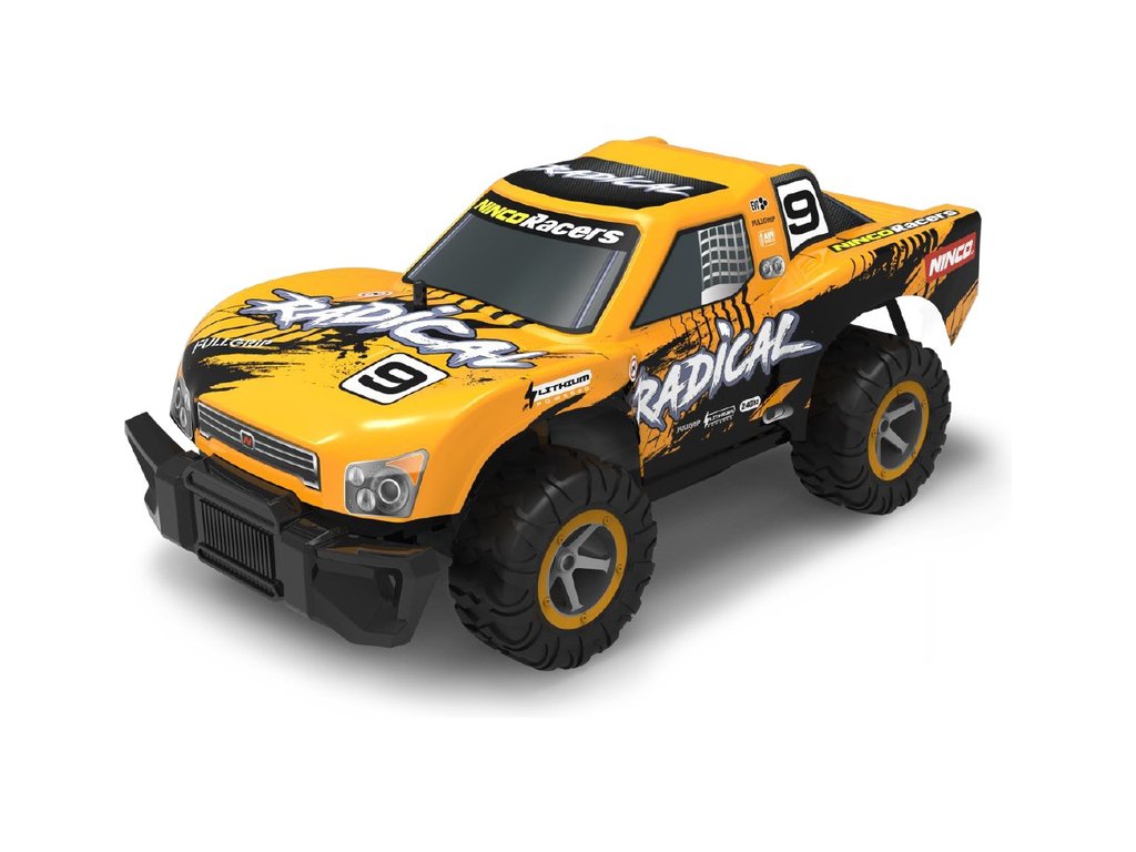 RC hračka pro děti NINCORACERS Radical je auto na dálkové ovládání v měřítku 1:14. Vhodné k jízdě v interiéru a venku na tvrdých površích, či nízké trávě. Auto má náhon zadních kol. Jelikož děti často narážejí, je vybaven robustním předním nárazníkem.