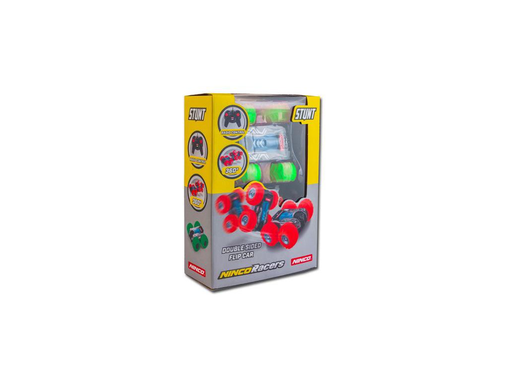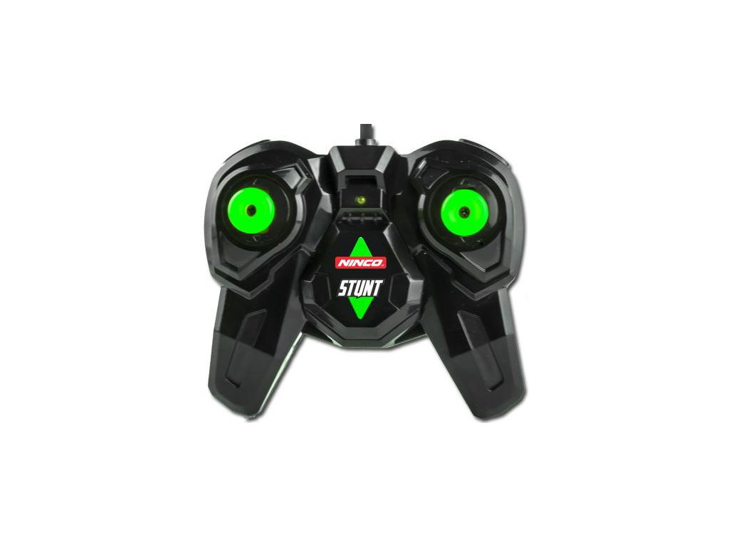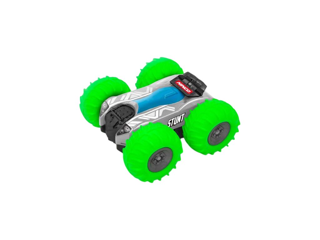 RC hračka pro děti Nincoracers Stunt Green je novinkou firmy Ninco. Oboustranný model s velkými pneumatikami a odolnou karoserií. Nafukovací kola jsou při jízdě velmi tichá a tlumí nárazy. Model je tedy vhodný i do interiéru. Díky silnému pohonu a rychlé reakci dokáže dělat úžasné triky, skoky, přetočení, jízdu po dvou kolech. Model vyšplhá na strmý svah, sjede schody nebo seskočí z obrubníku. Dodaný pákový vysílač 40MHz, Vám skvěle padne do ruky. Vše potřebné k jízdě je již součástí balení. I když jsou rozměry modelu jen 13x12,5x6 centimetrů, dokáže pobavit.