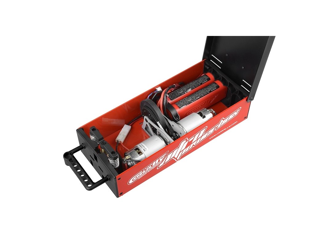 Startovací box Team Corally pro spalovací RC modely aut 1:8. Výkonný, cenově dostupný, spolehlivý a důkladně ověřený týmovými jezdci Corally. Zatuhlé nebo těsné motory nepředstavují pro startbox žádný problém, neboť je pohon řešen dvěma stejnosměrnými motory 775.