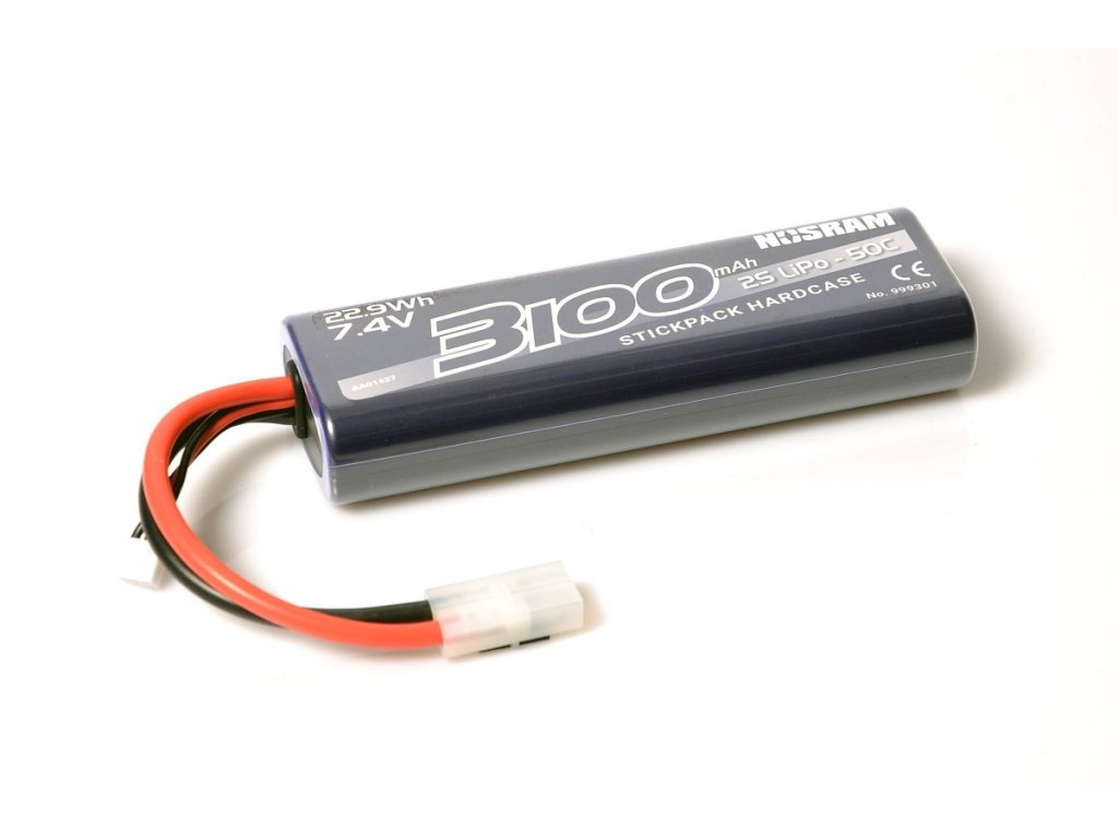 NOSRAM 3100mAh - 7.4V - 50C LiPo Car Stickpack Hardcase - Tamiya konektor