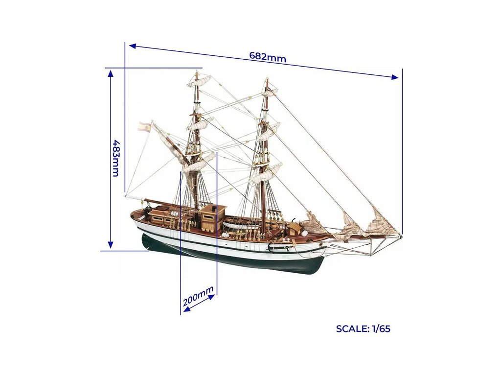 Stavebnice neplovoucího modelu lodi OCCRE Aurora, v měřítku 1:65. V balení jsou díly pro stavbu + plachty - laserem řezané díly, lišty, mosazné fotolepy, lanoví a další. Stavební výkresy a návod.