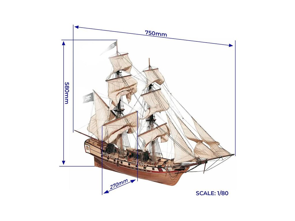 Stavebnice neplovoucího modelu lodi OCCRE Corsair, v měřítku 1:80. V balení jsou díly pro stavbu + plachty - laserem řezané díly, lišty, mosazné fotolepy, lanoví a další. Stavební výkresy a návod.