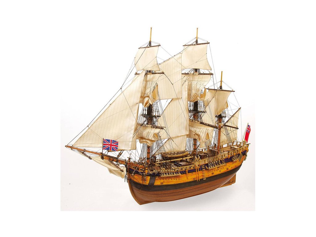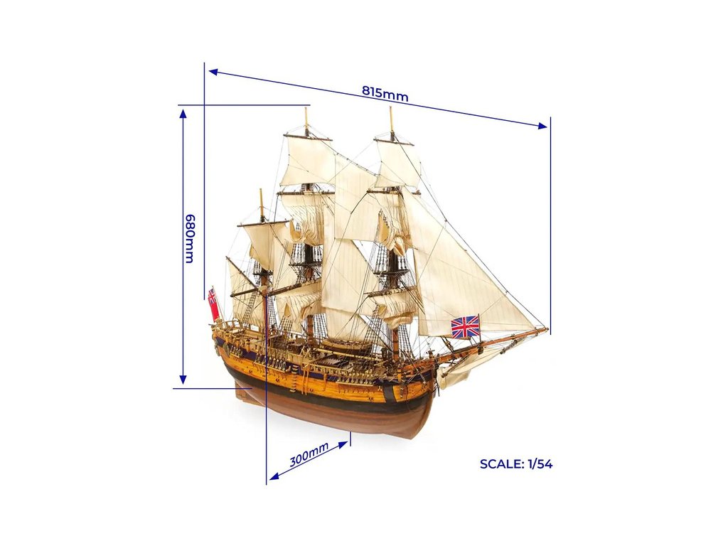 Stavebnice neplovoucího modelu lodi OCCRE HMS Endeavour, v měřítku 1:54. V balení jsou díly pro stavbu + plachty - laserem řezané díly, lišty, mosazné fotolepy, lanoví a další. Stavební výkresy a návod.