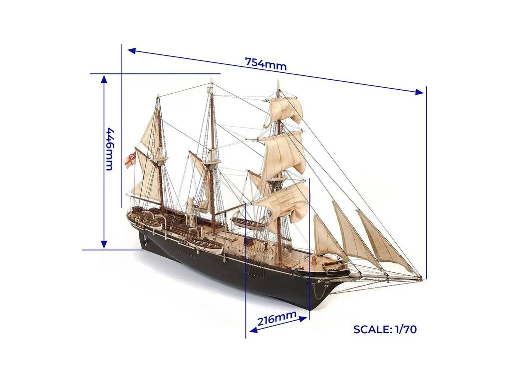 Stavebnice neplovoucího modelu lodi OCCRE HMS Endurance, v měřítku 1:70. V balení jsou díly pro stavbu + plachty - laserem řezané díly, lišty, mosazné fotolepy, lanoví a další. Stavební výkresy a návod.
