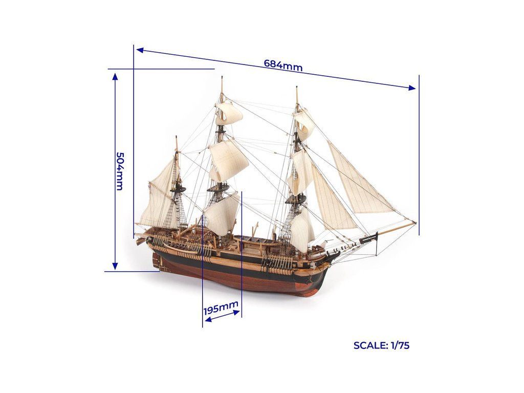 Stavebnice neplovoucího modelu lodi OCCRE HMS Erebus, v měřítku 1:75. V balení jsou díly pro stavbu + plachty - laserem řezané díly, lišty, mosazné fotolepy, lanoví a další. Stavební výkresy a návod.