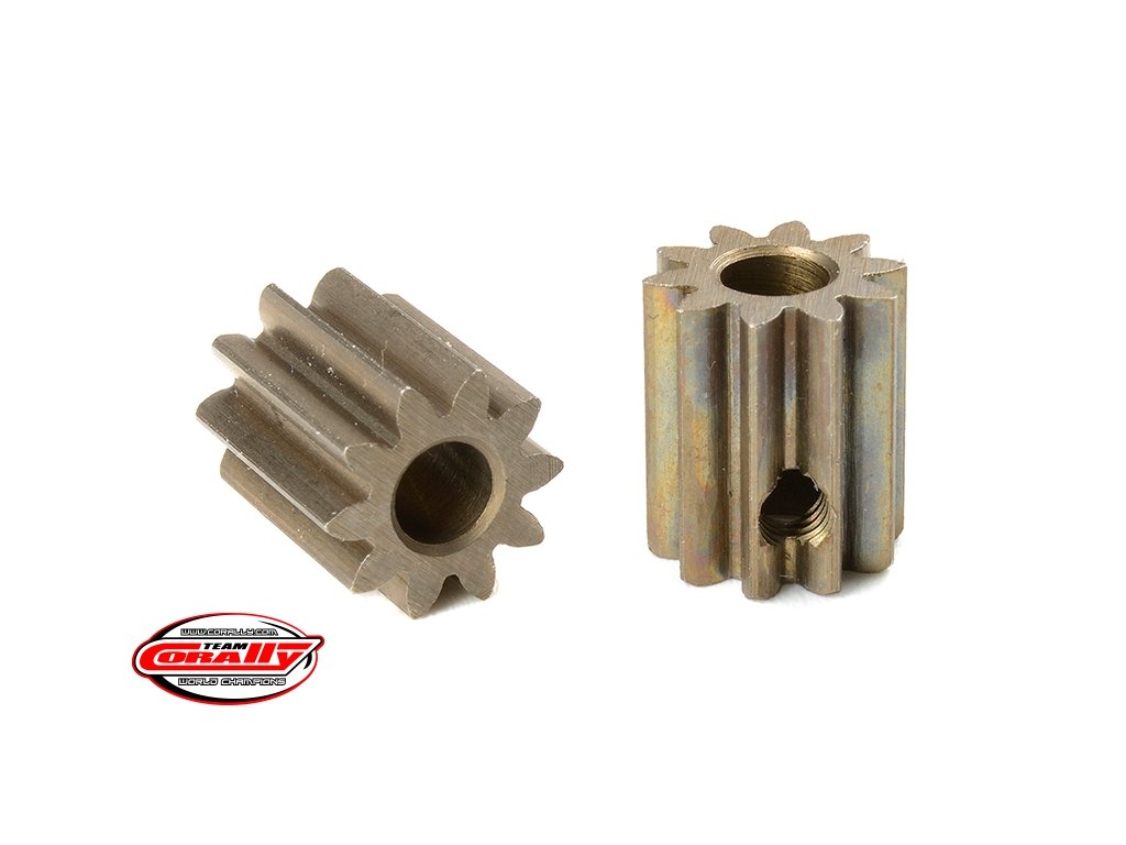 Krátké provedení, materiál tvrzená ocel, 10 zubů, modul ozubení 0.6M. Pro hřídel motoru o průměru 3.17 mm (1/8 in). Pastorky TEAM CORALLY jsou vyráběny frézováním a následně tvrzeny, čímž je zajištěna vysoká přesnost ozubení. Všechny pastorky TEAM CORALLY jsou vyrobeny v EU.Doplňkové parametry
