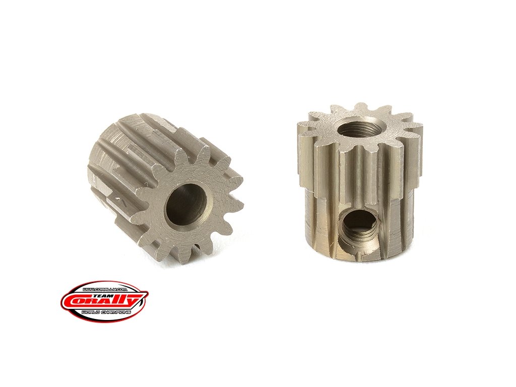 Krátké provedení, materiál tvrzená ocel, 13 zubů, modul ozubení 0.6M. Pro hřídel motoru o průměru 3.17 mm (1/8 in). Pastorky TEAM CORALLY jsou vyráběny frézováním a následně tvrzeny, čímž je zajištěna vysoká přesnost ozubení. Všechny pastorky TEAM CORALLY jsou vyrobeny v EU.Doplňkové parametry