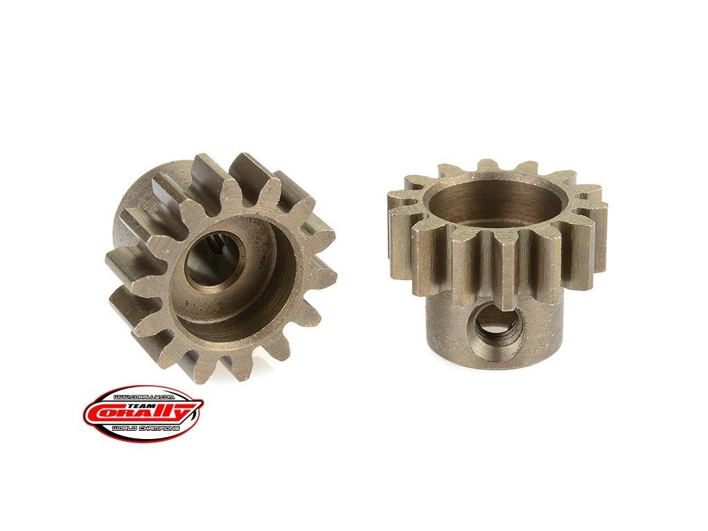 Krátké provedení, materiál tvrzená ocel, 14 zubů, modul ozubení 32DP. Pro hřídel motoru o průměru 3.17 mm (1/8 in). Pastorky TEAM CORALLY jsou vyráběny frézováním a následně tvrzeny, čímž je zajištěna vysoká přesnost ozubení. Všechny pastorky TEAM CORALLY jsou vyrobeny v EU.Doplňkové parametry