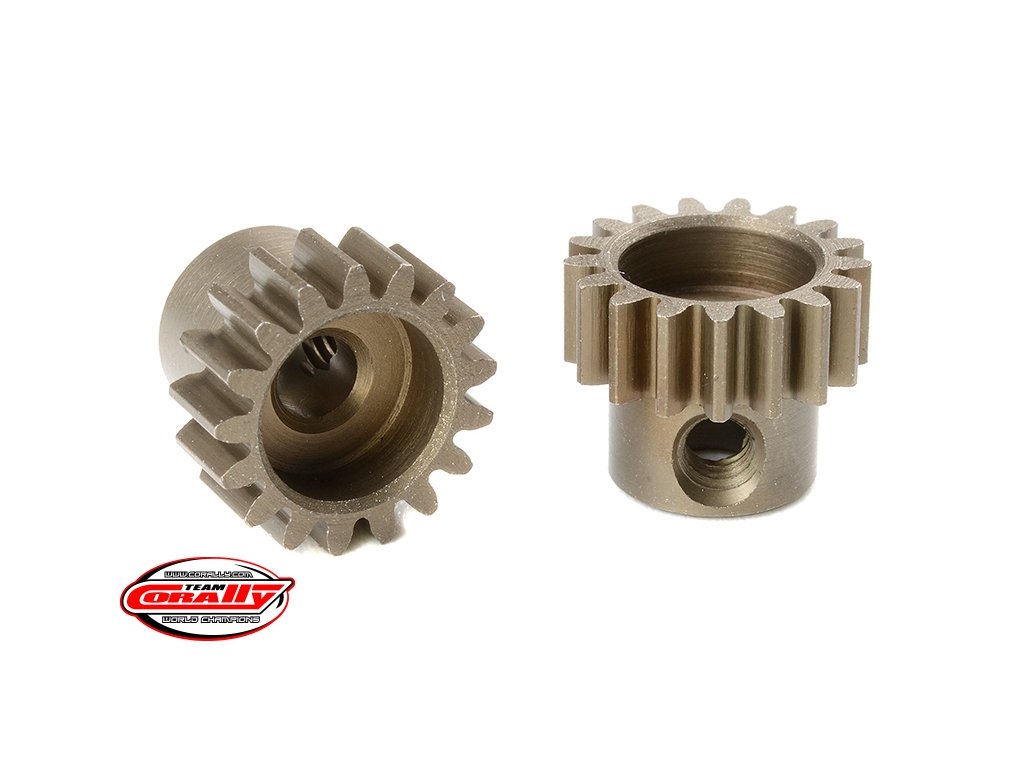 Krátké provedení, materiál tvrzená ocel, 17 zubů, modul ozubení 0.6M. Pro hřídel motoru o průměru 3.17 mm (1/8 in). Pastorky TEAM CORALLY jsou vyráběny frézováním a následně tvrzeny, čímž je zajištěna vysoká přesnost ozubení. Všechny pastorky TEAM CORALLY jsou vyrobeny v EU.Doplňkové parametry