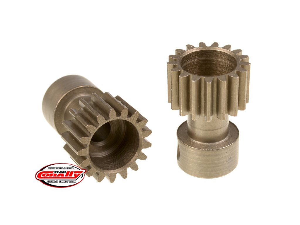 Dlouhé provedení, materiál tvrzená ocel, 17 zubů, modul ozubení 48DP. Pro hřídel motoru o průměru 3.17 mm (1/8 in). Pastorky TEAM CORALLY jsou vyráběny frézováním a následně tvrzeny, čímž je zajištěna vysoká přesnost ozubení. Všechny pastorky TEAM CORALLY jsou vyrobeny v EU.