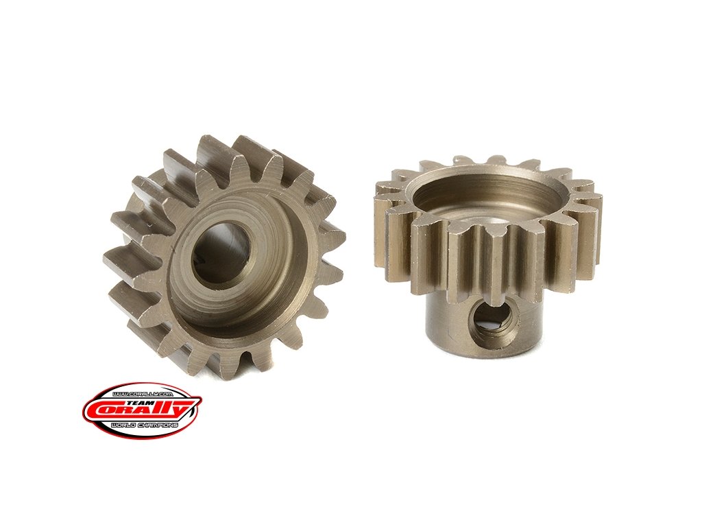 Krátké provedení, materiál tvrzená ocel, 17 zubů, modul ozubení M1.0. Pro hřídel motoru o průměru 5,0 mm. Pastorky TEAM CORALLY jsou vyráběny frézováním a následně tvrzeny, čímž je zajištěna vysoká přesnost ozubení. Všechny pastorky TEAM CORALLY jsou vyrobeny v EU.Doplňkové parametry