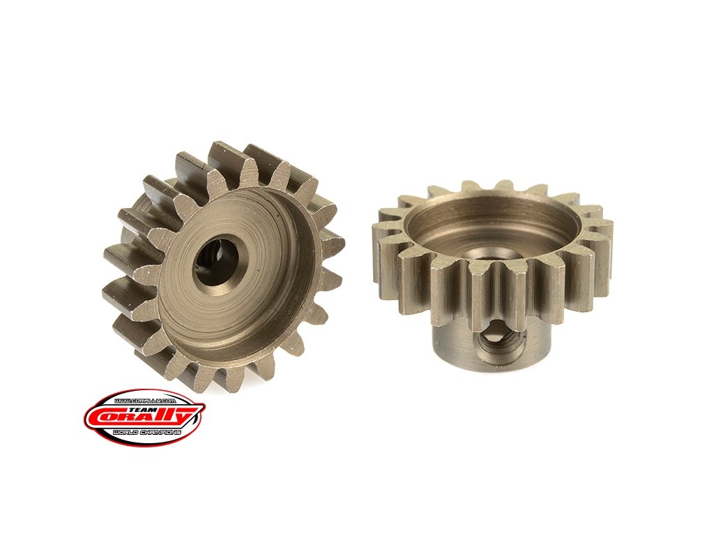 Krátké provedení, materiál tvrzená ocel, 18 zubů, modul ozubení 32DP. Pro hřídel motoru o průměru 3.17 mm (1/8 in). Pastorky TEAM CORALLY jsou vyráběny frézováním a následně tvrzeny, čímž je zajištěna vysoká přesnost ozubení. Všechny pastorky TEAM CORALLY jsou vyrobeny v EU.Doplňkové parametry