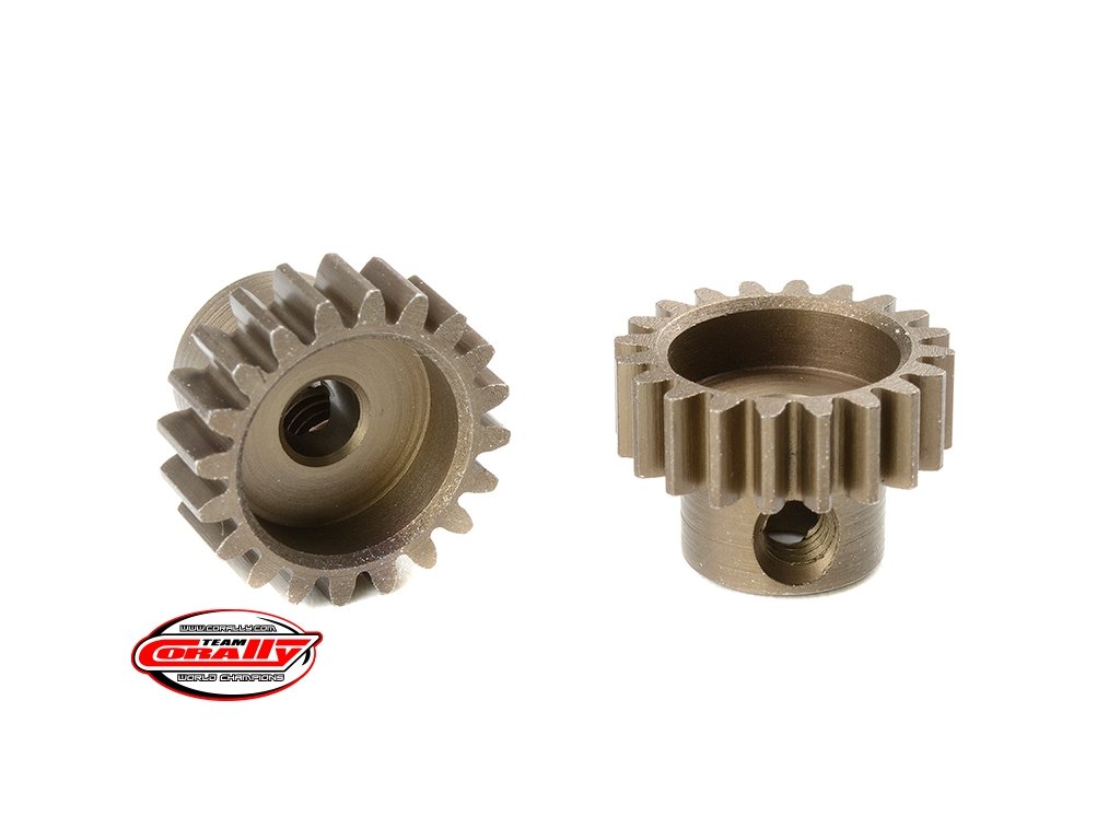 Krátké provedení, materiál tvrzená ocel, 20 zubů, modul ozubení 0.6M. Pro hřídel motoru o průměru 3.17 mm (1/8 in). Pastorky TEAM CORALLY jsou vyráběny frézováním a následně tvrzeny, čímž je zajištěna vysoká přesnost ozubení. Všechny pastorky TEAM CORALLY jsou vyrobeny v EU.Doplňkové parametry