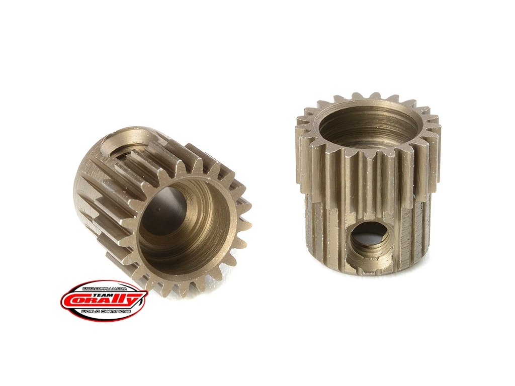 Krátké provedení, materiál tvrzená ocel, 21 zubů, modul ozubení 64DP. Pro hřídel motoru o průměru 3.17 mm (1/8 in). Pastorky TEAM CORALLY jsou vyráběny frézováním a následně tvrzeny, čímž je zajištěna vysoká přesnost ozubení. Všechny pastorky TEAM CORALLY jsou vyrobeny v EU.Doplňkové parametry