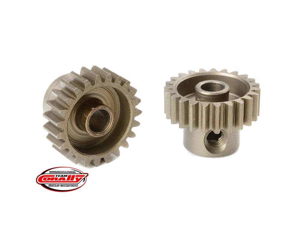 Krátké provedení, materiál tvrzená ocel, 23 zubů, modul ozubení 48DP. Pro hřídel motoru o průměru 3.17 mm (1/8 in). Pastorky TEAM CORALLY jsou vyráběny frézováním a následně tvrzeny, čímž je zajištěna vysoká přesnost ozubení. Všechny pastorky TEAM CORALLY jsou vyrobeny v EU.Doplňkové parametry