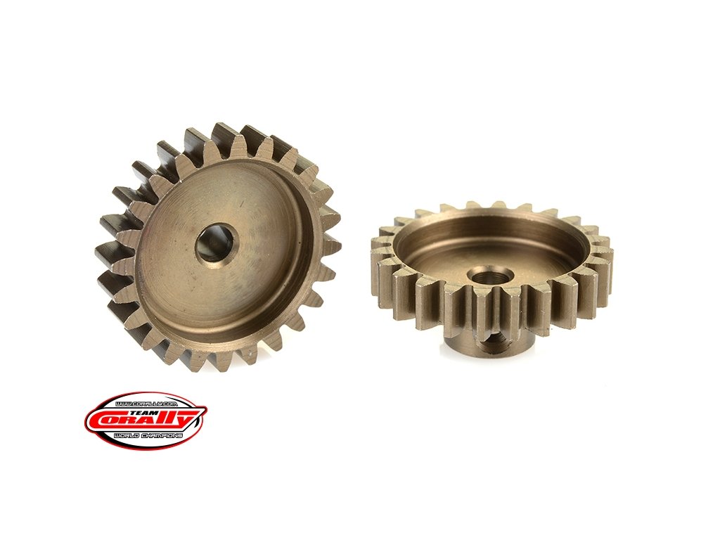 Krátké provedení, materiál tvrzená ocel, 24 zubů, modul ozubení 32DP. Pro hřídel motoru o průměru 3.17 mm (1/8 in). Pastorky TEAM CORALLY jsou vyráběny frézováním a následně tvrzeny, čímž je zajištěna vysoká přesnost ozubení. Všechny pastorky TEAM CORALLY jsou vyrobeny v EU.Doplňkové parametry