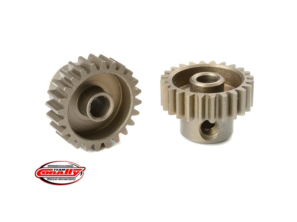 Krátké provedení, materiál tvrzená ocel, 24 zubů, modul ozubení 48DP. Pro hřídel motoru o průměru 3.17 mm (1/8 in). Pastorky TEAM CORALLY jsou vyráběny frézováním a následně tvrzeny, čímž je zajištěna vysoká přesnost ozubení. Všechny pastorky TEAM CORALLY jsou vyrobeny v EU.Doplňkové parametry