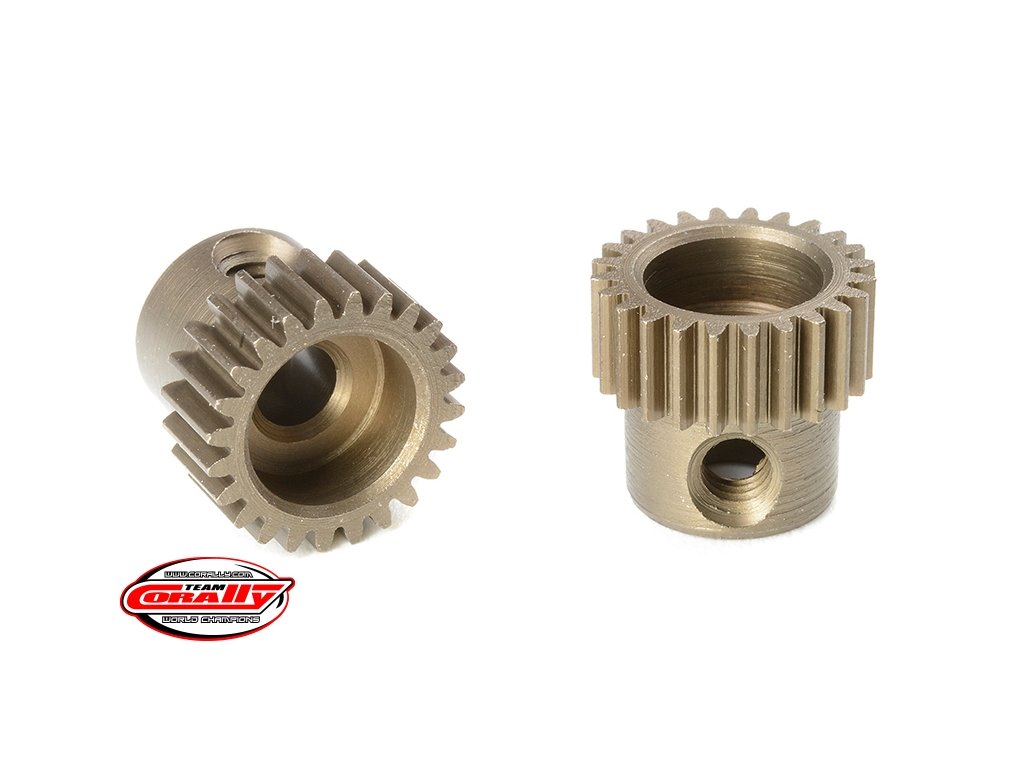 Krátké provedení, materiál tvrzená ocel, 24 zubů, modul ozubení 64DP. Pro hřídel motoru o průměru 3.17 mm (1/8 in). Pastorky TEAM CORALLY jsou vyráběny frézováním a následně tvrzeny, čímž je zajištěna vysoká přesnost ozubení. Všechny pastorky TEAM CORALLY jsou vyrobeny v EU.Doplňkové parametry