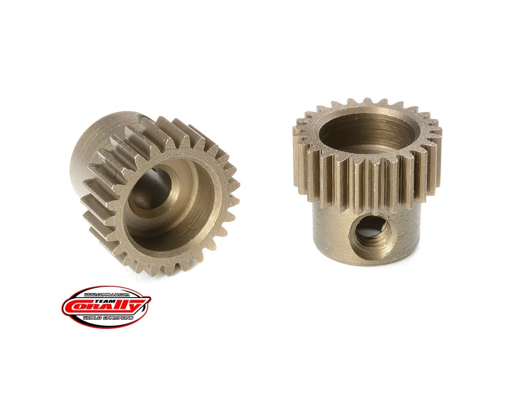 Krátké provedení, materiál tvrzená ocel, 25 zubů, modul ozubení 64DP. Pro hřídel motoru o průměru 3.17 mm (1/8 in). Pastorky TEAM CORALLY jsou vyráběny frézováním a následně tvrzeny, čímž je zajištěna vysoká přesnost ozubení. Všechny pastorky TEAM CORALLY jsou vyrobeny v EU.Doplňkové parametry