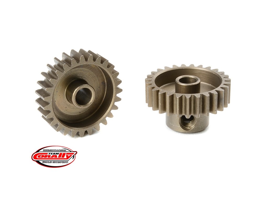 Krátké provedení, materiál tvrzená ocel, 27 zubů, modul ozubení 48DP. Pro hřídel motoru o průměru 3.17 mm (1/8 in). Pastorky TEAM CORALLY jsou vyráběny frézováním a následně tvrzeny, čímž je zajištěna vysoká přesnost ozubení. Všechny pastorky TEAM CORALLY jsou vyrobeny v EU.Doplňkové parametry