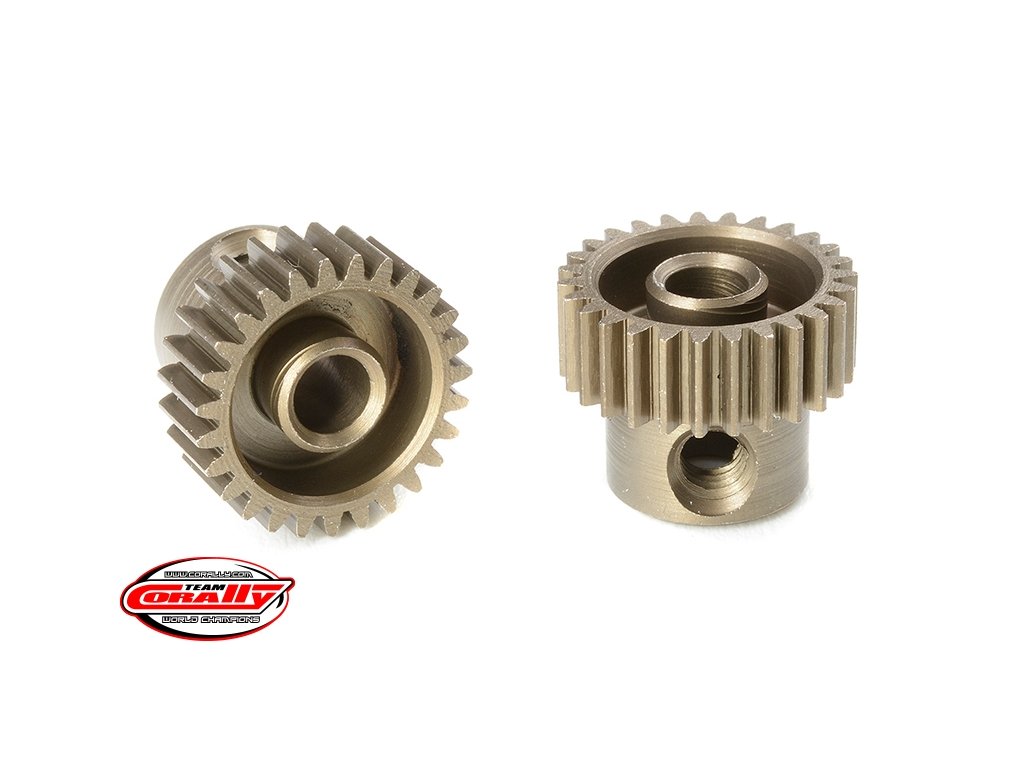 Krátké provedení, materiál tvrzená ocel, 27 zubů, modul ozubení 64DP. Pro hřídel motoru o průměru 3.17 mm (1/8 in). Pastorky TEAM CORALLY jsou vyráběny frézováním a následně tvrzeny, čímž je zajištěna vysoká přesnost ozubení. Všechny pastorky TEAM CORALLY jsou vyrobeny v EU.Doplňkové parametry