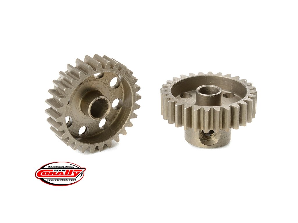 Krátké provedení, materiál tvrzená ocel, 28 zubů, modul ozubení 48DP. Pro hřídel motoru o průměru 3.17 mm (1/8 in). Pastorky TEAM CORALLY jsou vyráběny frézováním a následně tvrzeny, čímž je zajištěna vysoká přesnost ozubení. Všechny pastorky TEAM CORALLY jsou vyrobeny v EU.Doplňkové parametry
