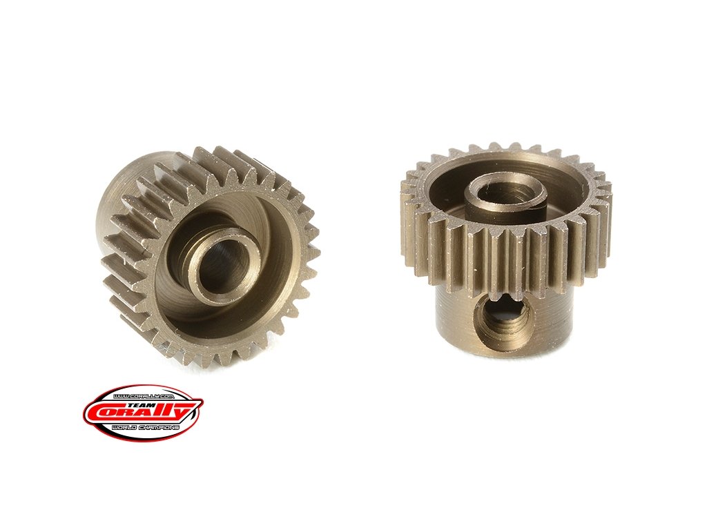 Krátké provedení, materiál tvrzená ocel, 28 zubů, modul ozubení 64DP. Pro hřídel motoru o průměru 3.17 mm (1/8 in). Pastorky TEAM CORALLY jsou vyráběny frézováním a následně tvrzeny, čímž je zajištěna vysoká přesnost ozubení. Všechny pastorky TEAM CORALLY jsou vyrobeny v EU.Doplňkové parametry
