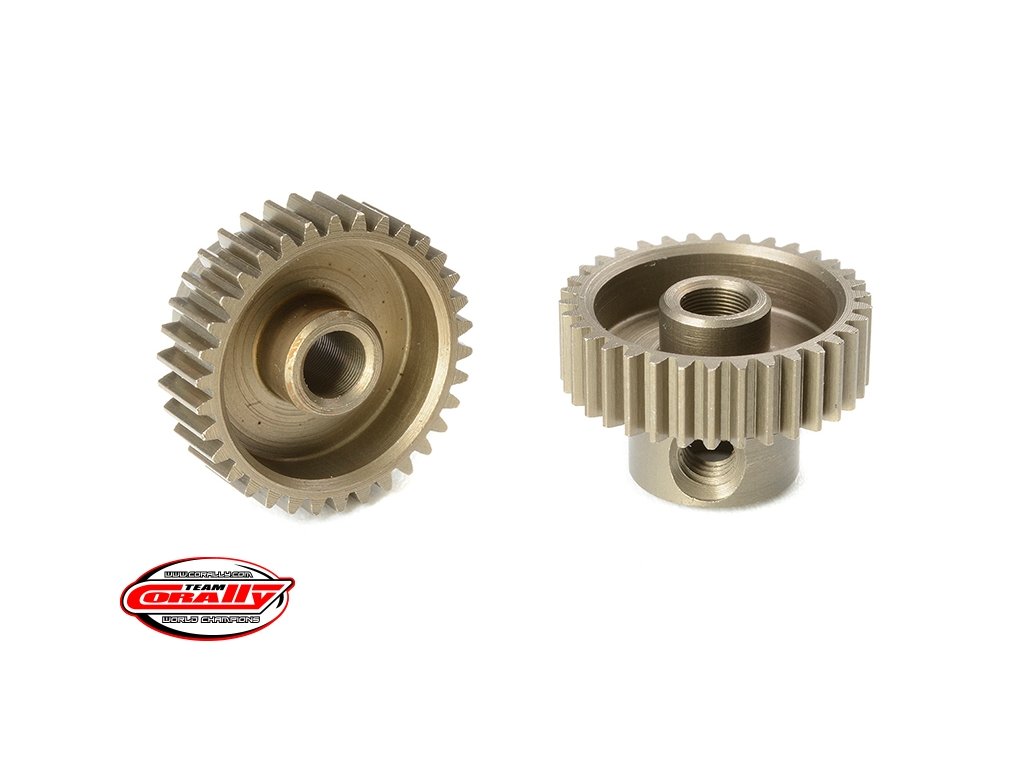 Krátké provedení, materiál tvrzená ocel, 34 zubů, modul ozubení 64DP. Pro hřídel motoru o průměru 3.17 mm (1/8 in). Pastorky TEAM CORALLY jsou vyráběny frézováním a následně tvrzeny, čímž je zajištěna vysoká přesnost ozubení. Všechny pastorky TEAM CORALLY jsou vyrobeny v EU.Doplňkové parametry