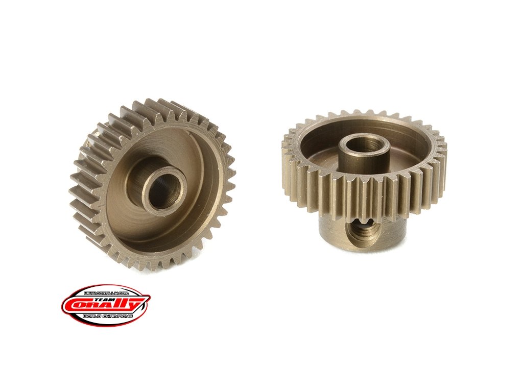 Krátké provedení, materiál tvrzená ocel, 35 zubů, modul ozubení 64DP. Pro hřídel motoru o průměru 3.17 mm (1/8 in). Pastorky TEAM CORALLY jsou vyráběny frézováním a následně tvrzeny, čímž je zajištěna vysoká přesnost ozubení. Všechny pastorky TEAM CORALLY jsou vyrobeny v EU.Doplňkové parametry