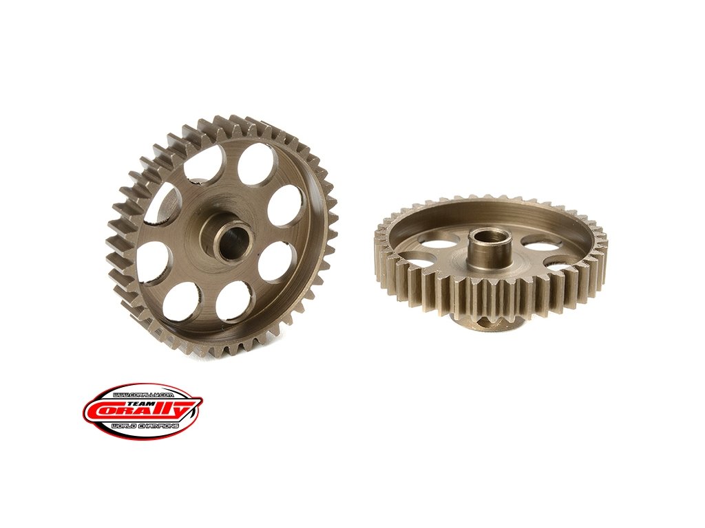 Krátké provedení, materiál tvrzená ocel, 42 zubů, modul ozubení 48DP. Pro hřídel motoru o průměru 3.17 mm (1/8 in). Pastorky TEAM CORALLY jsou vyráběny frézováním a následně tvrzeny, čímž je zajištěna vysoká přesnost ozubení. Všechny pastorky TEAM CORALLY jsou vyrobeny v EU.Doplňkové parametry