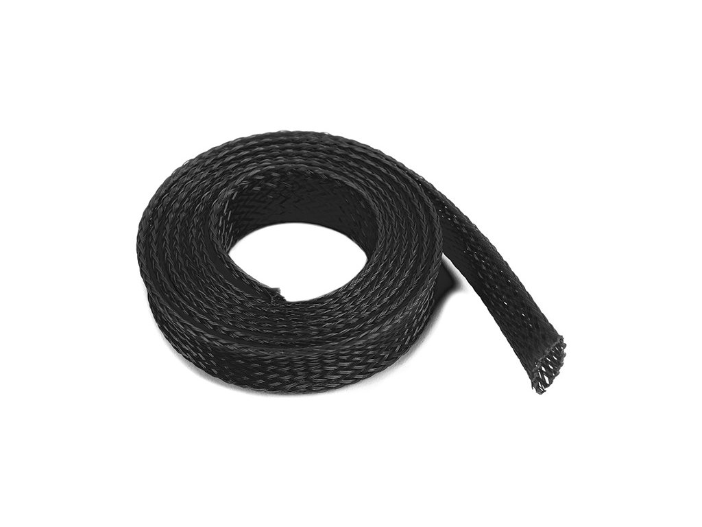 Ochranný kabelový oplet 10 mm, barva černá, délka 1m, se natáhne na kabel a slouží k ochraně izolace kabelů. Rozměr určuje průměr, na který je doporučeno oplet použít. Oplet je vyroben z pružného materiálu, který se dá přizpůsobit různým tvarům a rozměrům, nelze jej smršťovat teplem.