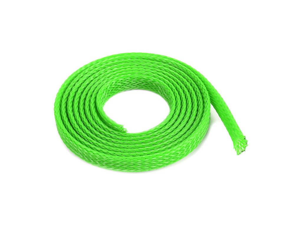 Ochranný oplet kabelů, průměr 6mm, barva zelená, délka 1m. Rozměr určuje průměr, na který je doporučeno oplet použít. Oplet je vyroben z pružného materiálu, který se dá přizpůsobit různým tvarům a rozměrům, nelze jej smršťovat teplem.