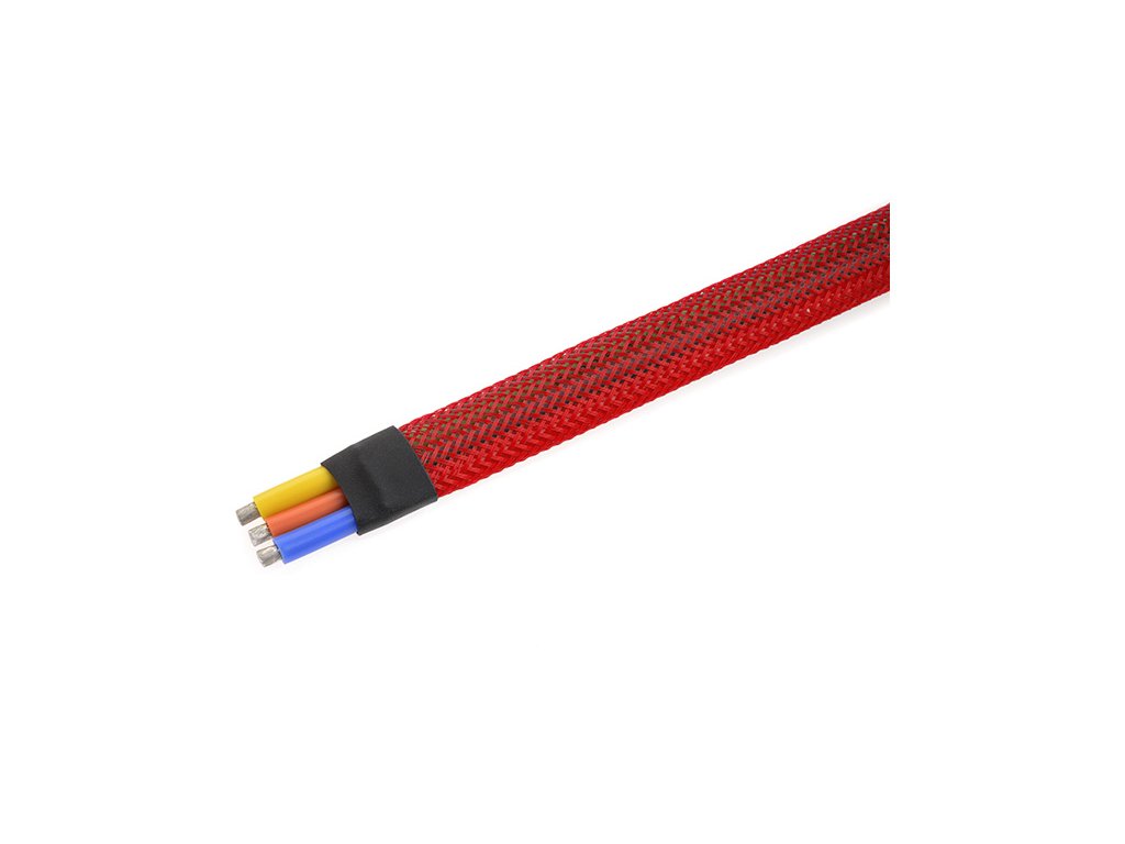 Ochranný kabelový oplet 8mm červený (délka 1m) se natáhne na kabel a slouží k ochraně izolace kabelů. Rozměr určuje průměr, na který je doporučeno oplet použít. Oplet je vyroben z pružného materiálu, který se dá přizpůsobit různým tvarům a rozměrům, nelze jej smršťovat teplem.