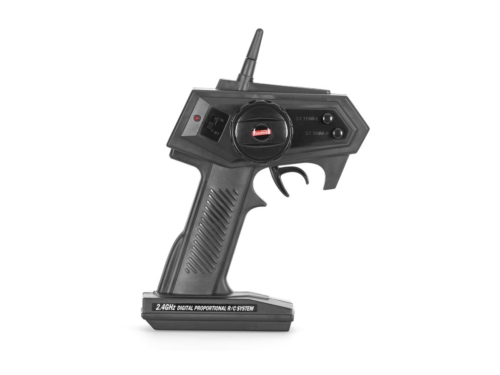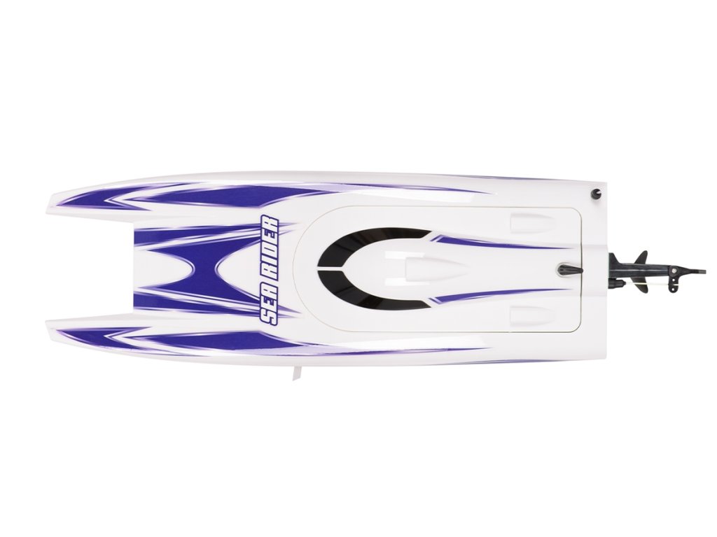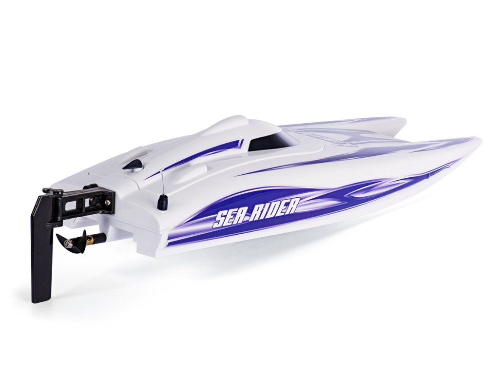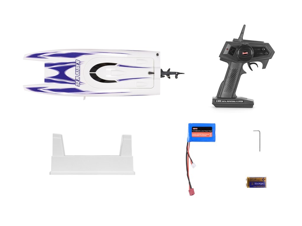 Rychlostní člun (420 mm) s plastovým trupem s motorem řady 390 s vodním chlazením. Zcela hotový model s dvoukanálovou pistolovou RC soupravou 2,4GHz, elektronickým regulátorem otáček, 7,4V NiMH aku a nabíječem.Doplňkové parametry
