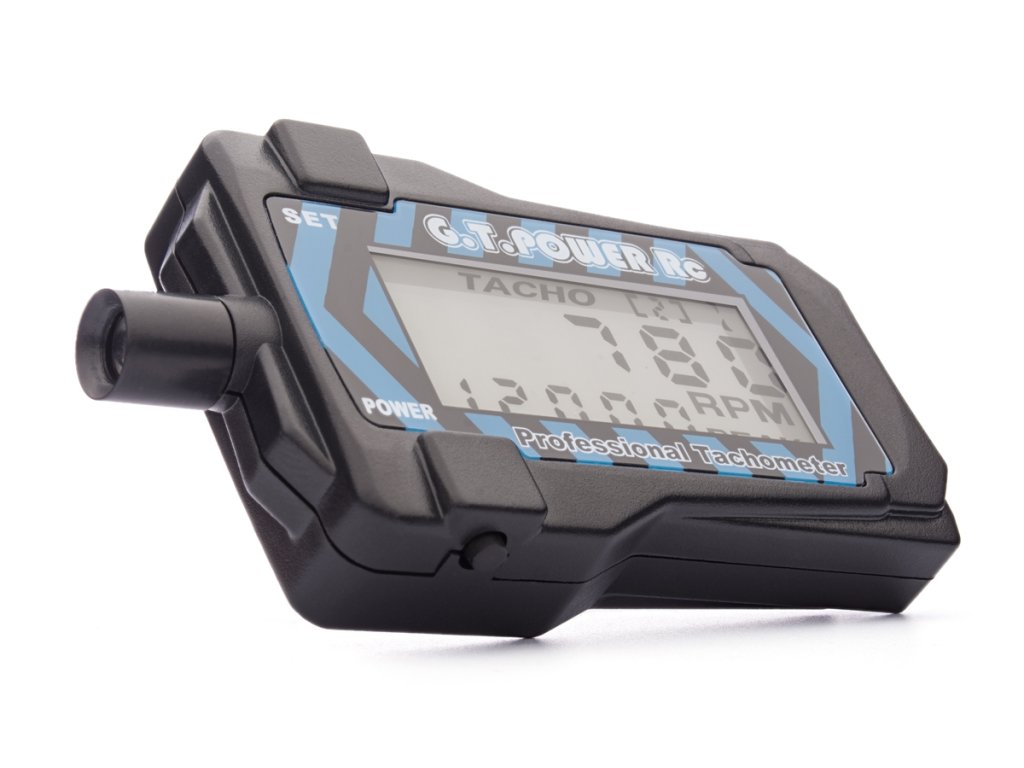 Miniaturní optický otáčkoměr pro měření otáček vrtulí s 2-9 listy s LCD displejem s vypínatelným podsvícením. Měří okamžité otáčky, zaznenává maximální naměřenou hodnotu.